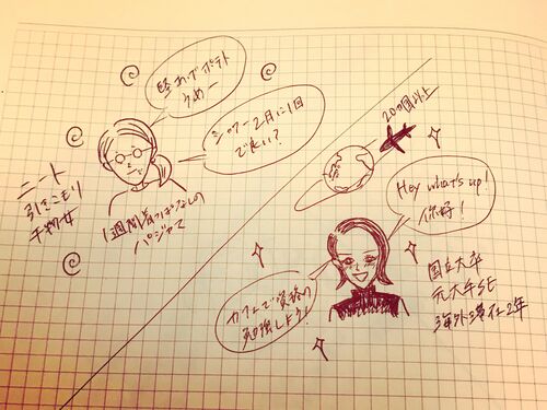 こんにちは〜!YUです! 昨日暇でさ〜、スケジュール帳に落書きしてたんだけど、自分の似顔絵を描いていてあることに気づいてしまった。 「オンとオフで見た目が違いすぎて、どっちを描けば良いんだ〜!((((;゚Д゚)))))))」 だから、とりあえず両方の似顔絵を…